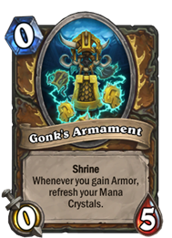 0费,0/5,神龛,当你获得护甲时,恢复你的法力水晶。