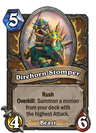 5费,4/8,野兽,突袭,超杀:从你的卡组里召唤一只攻击力最高的随从。