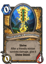 0费,0/4,神龛,当一个友方随从受到伤害并没有死亡后,使其获得护盾。