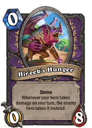 他的神龛卡组拥有大量自我伤害和治疗法术,所以要准备好在一个回合中承受巨额的伤害。如果该神龛处于活跃状态,在没有一击毙命的情况下不要选择去攻击对面英雄。