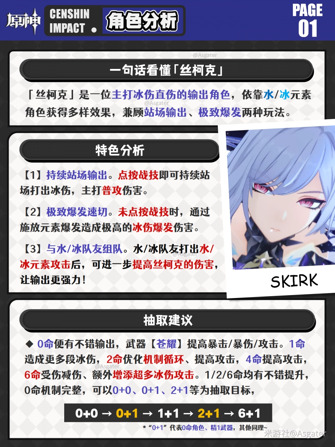 丝柯克是「五星冰系单手剑输出」,是个可以施放战技开启【强化普攻】模式的冰系大C,而且处于【强化普攻】下,大招会暂时失效,大招变成开启【超·强化普攻】模式,那么有不少小伙伴好奇丝柯克要抽吗,下面就来告诉大家。