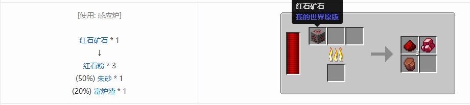 该配方接受催化剂,有50%几率额外获得一个红石粉