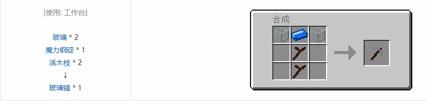另外玻璃镐不能用于采集冰块 / 萤石一类物品。