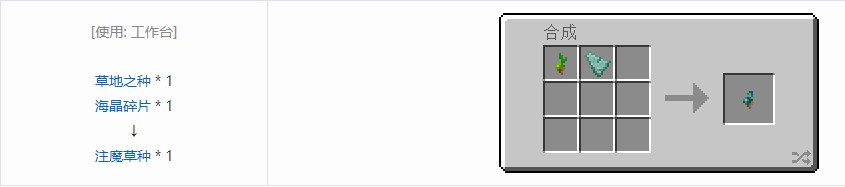 由草地之种和海晶碎片合成,可以直接对草方块 / 泥土方块使用,将周围一小片范围变成注魔草地。