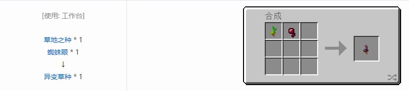 由草地之种和蜘蛛眼合成,可以直接对草方块 / 泥土方块使用,将周围一小片范围变成异变草地。