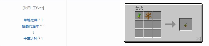 由草地之种和枯死的灌木合成,可以直接对草方块 / 泥土方块使用,将周围一小片范围变成干草地,所能影响的方块也高于普通草地之种。