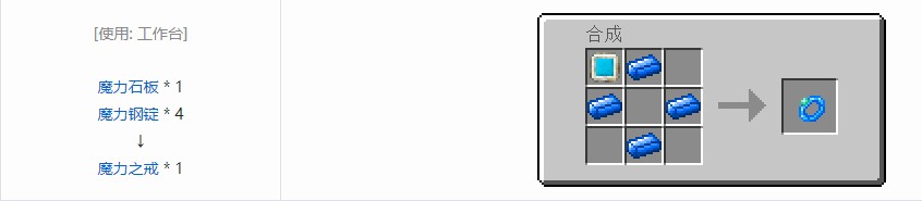合成时,需要用魔力石板合成,但合成出的魔力之戒内部将会保留魔力石板之中的魔力。