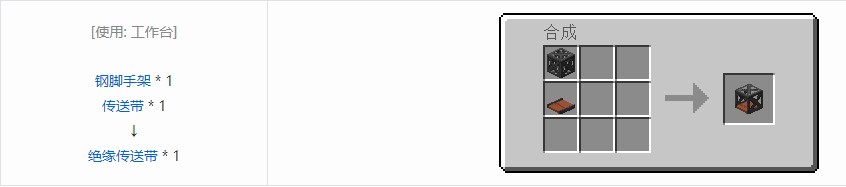 用钢脚手架和传送带合成,让玩家不会不小心吸到传送带上的物品,缺点是无法再运输生物
