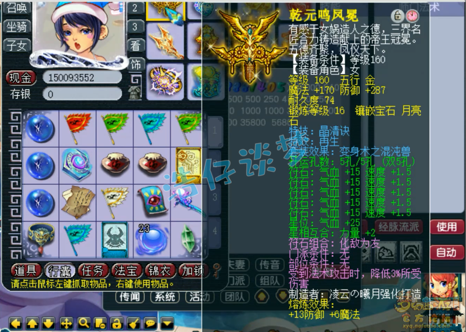 160级再生晶清诀混沌兽套女头,打了16锻月亮石。