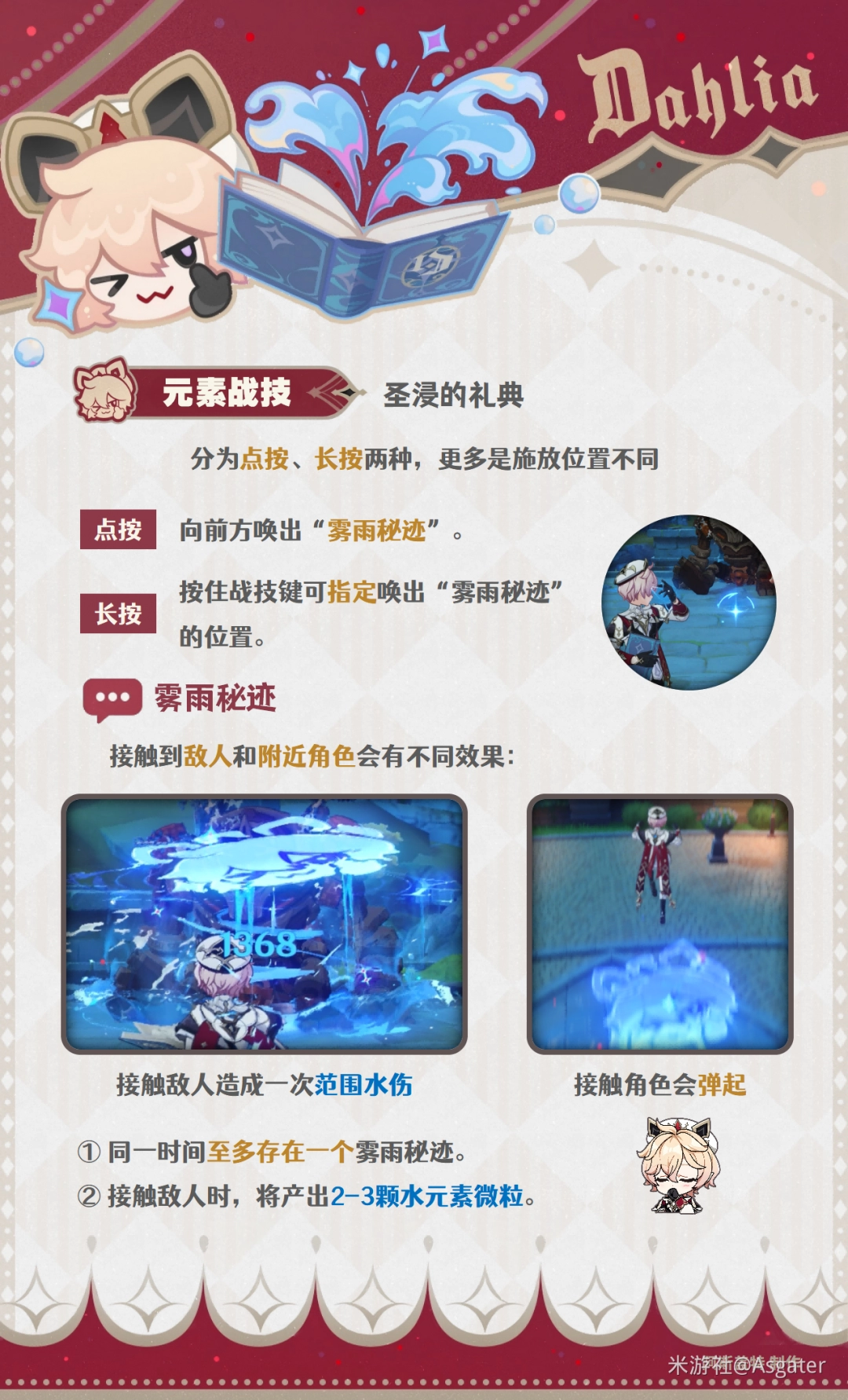 ① 施放后接触敌人造成一次弱水伤害(1元素量)。