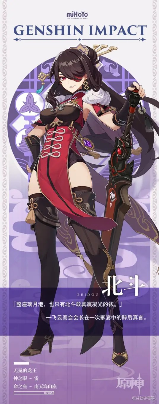 北斗,米哈游出品的游戏《原神》及其衍生作品中的角色,“南十字”船队头领,在璃月有着相当的声望。
