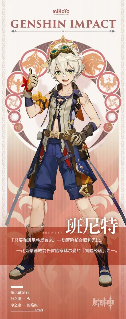 班尼特,米哈游出品的游戏《原神》及其衍生作品中的角色,蒙德城冒险家协会为数不多的年轻冒险家,一直被莫名的“不幸”所纠缠。