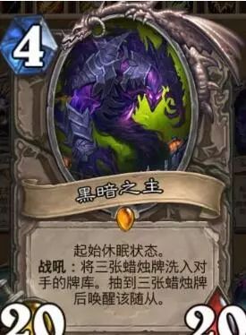 作为一个4费随从,黑暗之助却拥有《炉石传说》最强的单体身材,足足20/20,单挑大表哥之后还能拥有很多生命值,可是为了游戏的平衡性,4费20/20显然不现实,所以就给黑暗之助添加了难如登天的触发效果,需要对面抽到3张蜡烛,然后才能激活黑暗之主,且不说对面什么时候才能凑齐这3张蜡烛,即使运气好都被抽到,激活了黑暗之助,这种傻大个随从估计也是一回合就被解掉的料。