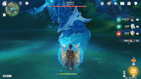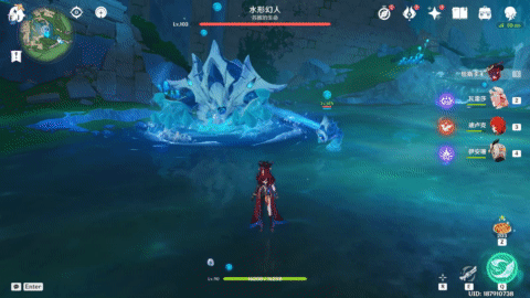 所以更建议用元素反应,火、冰、风、岩、雷、草都可以与水反应,水幻人只有1单位水元素,故现在角色任意的火、冰、草、雷附着攻击都可以瞬间击溃