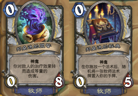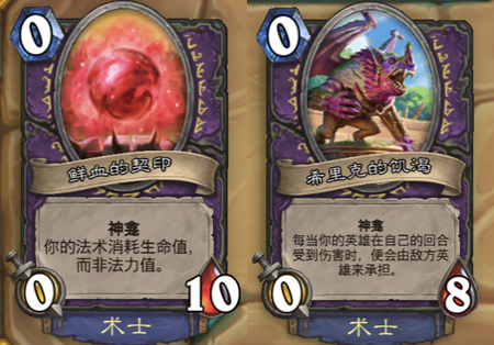 第一个神龛对于术士来说一点都不陌生,大家也见过很多次,只能说谨慎使用不然很危险。第二个还算是比较有趣,可以选一些自残的卡牌来达到这个效果。