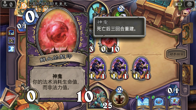 本次拉斯塔哈的冒险模式,和以前的狗头人、女巫森林大相径庭。所不同的是,在开局时,你可以选择一个职业专属的神龛!比如,我在开局时碰到了三个职业:萨满的神龛效果是将你的法力值减2,免费的视界术;圣骑士的神龛效果是你的英雄收到伤害,对敌方打5,看起来很牛;潜行者的神龛效果施放法术后可以再次施放。