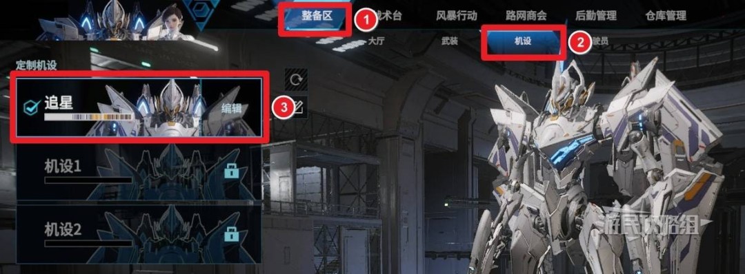 进入游戏后,在主界面点击【整备区】,然后下方选项卡中选择【机设】,继续选择想要修改配色的机兵,点击【编辑】即可修改颜色。