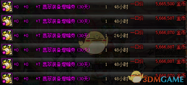 在体验服放出增幅活动消息的时候,许多商人放出烟雾弹,说这次+7卷子拉了,因为+6之前不会掉级谁会用卷子呢?然而,事实并不是如此,+6之前虽不会掉级但是会失败,+8之前虽不会归零但是会掉级,所以用+7卷子来增幅既省钱又快捷,今天+7卷整体涨幅在50%左右。