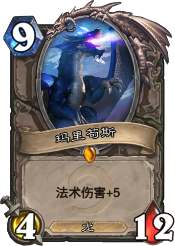 玛里苟斯在魔兽世界可是蓝龙之王,掌握魔法的力量,在炉石传说中玩家们更喜欢称他为黑科技之王,因为他往往只会出现在各种黑科技各种OTK卡组中,基本上一出场,对面就可以宣告投降了。玛里苟斯虽然费用很高,需要九费,往往很难跟其他卡牌形成配合,但是聪明的玩家会用各种方式拉出蓝龙王(狗头人幻术师,梦境花栽种师,世界之树的嫩枝),然后一套魔法带走敌人。