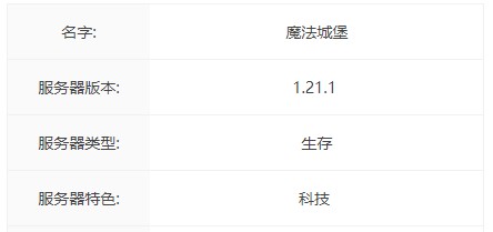 我的世界里面有很多的服务器,每个服务器都有自己的独特的玩法,今天给大家带来的服务器的名字叫:魔法城堡,那么下面就是这个服务器的一个具体的IP地址.