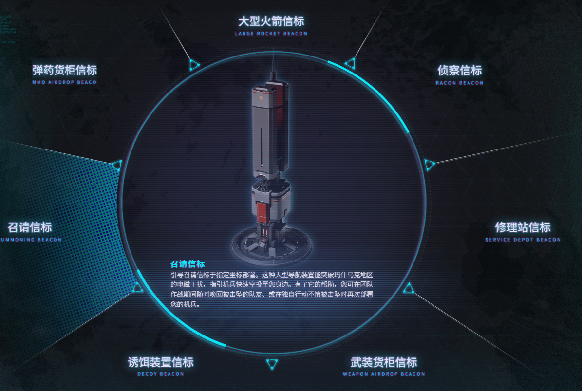 有了它的帮助,您可在团队作战期间随时唤回被击坠的队友、或在独自行动不慎被击坠时再次部署您的机兵。