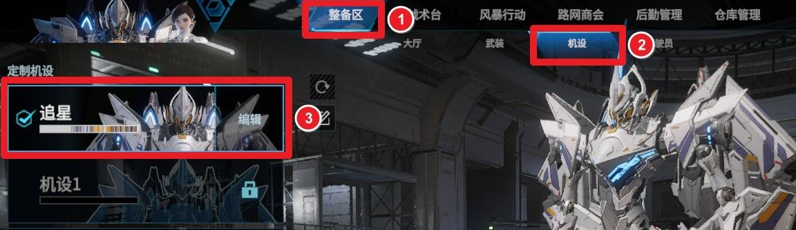 进入游戏后,在主界面点击【整备区】,然后下方选项卡中选择【机设】。