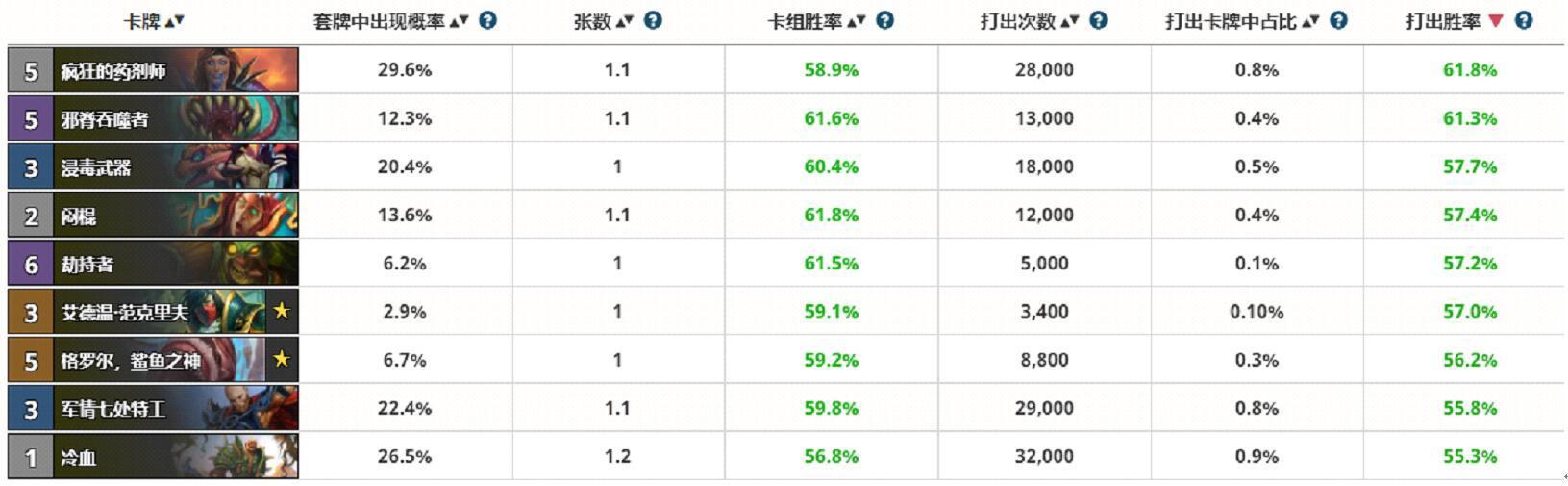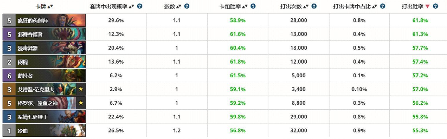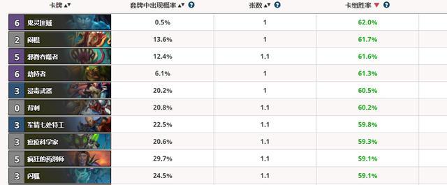 从职业单卡胜率,可以看出盗贼前十胜率卡中根本没有新卡,难道盗贼新卡就如此弱?