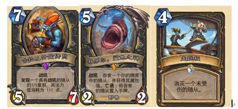 2.古拉巴士宣传员大部分时候也能找到不错的战吼,甚至能找到大表哥骨魇之类的神卡,本身的身材小亏,8费出手很多情况可以堪比优质8费甚至更强的效果。