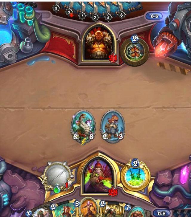 战士交完AOE我方失去了进攻性,战士的手牌也不是很多了,下一张抽得不好就过牌来慢慢打,持续作战/* bbscode i too long */
