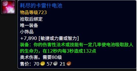 魔兽世界耗尽的卡雷什电池属性效果一览
