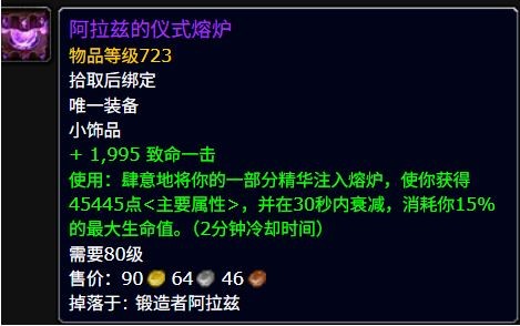 魔兽世界的11.1.5版本已经过去了一段时间了,夹在中间11.2版本也已经发布了一些预告了,在11.2版本中带来了许多新的饰品装备,那么有不少小伙伴好奇阿拉兹的仪式熔炉属性效果是什么,下面就来告诉大家。