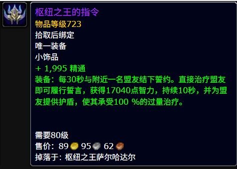 魔兽世界的11.1.5版本已经过去了一段时间了,夹在中间11.2版本也已经发布了一些预告了,在11.2版本中带来了许多新的饰品装备,那么有不少小伙伴好奇枢纽之王的指令属性效果是什么,下面就来告诉大家。