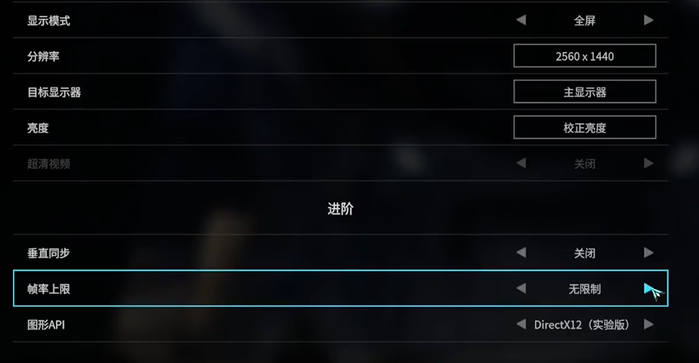 「帧率」选择无限制,这是最能提高体感流畅度的改动。
