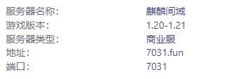 我的世界里面有很多的服务器,每个服务器都有自己的独特的玩法,今天给大家带来的服务器的名字叫:麒麟间域,那么下面就是这个服务器的一个具体的IP地址.