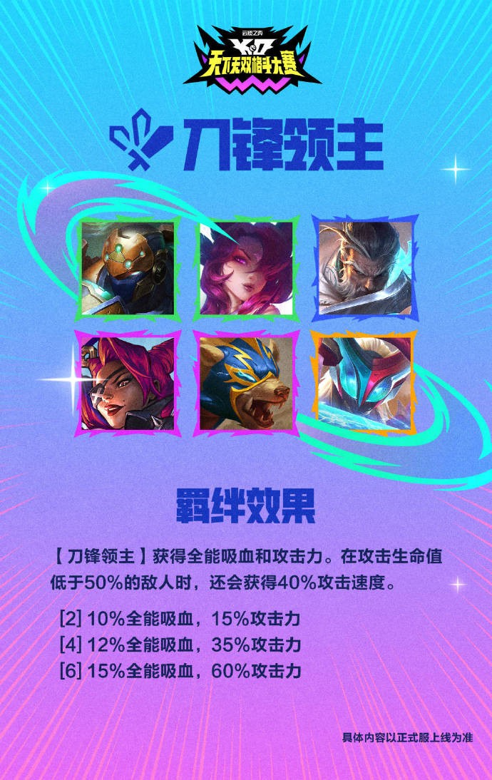 【刀锋领主】获得全能吸血和攻击力。在攻击生命值低于50%的敌人时,还会获得40%攻击速度。
