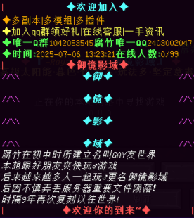 我的世界里面有很多的服务器,每个服务器都有自己的独特的玩法,今天给大家带来的服务器的名字叫:御镜影域,那么下面就是这个服务器的一个具体的IP地址.
