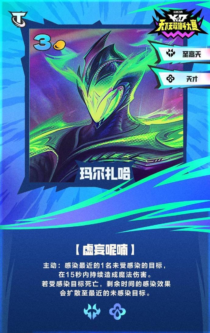 云顶之弈S15版本天下无双格斗大赛主题PBE美测服更新了,在新赛季会增加很多新的羁绊和棋子,还有不少老羁绊,老英雄的回归,那么有不少小伙伴好奇各个英雄的技能是什么,下面就给大家带来s15马尔扎哈羁绊效果一览。