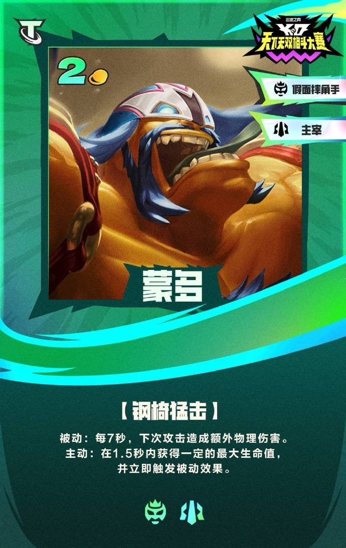 云顶之弈S15版本天下无双格斗大赛主题PBE美测服更新了,在新赛季会增加很多新的羁绊和棋子,还有不少老羁绊,老英雄的回归,那么有不少小伙伴好奇各个英雄的技能是什么,下面就给大家带来s15蒙多羁绊效果一览。