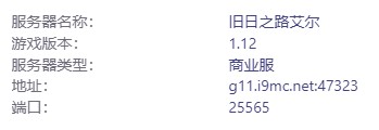 [1.12.2]旧日之路-艾尔莉雅[四区] 内容: 副本丨任务丨进阶丨宝石丨符文丨锻造丨抽奖丨随身仓库丨在线奖励丨新服开荒 可挂机白嫖