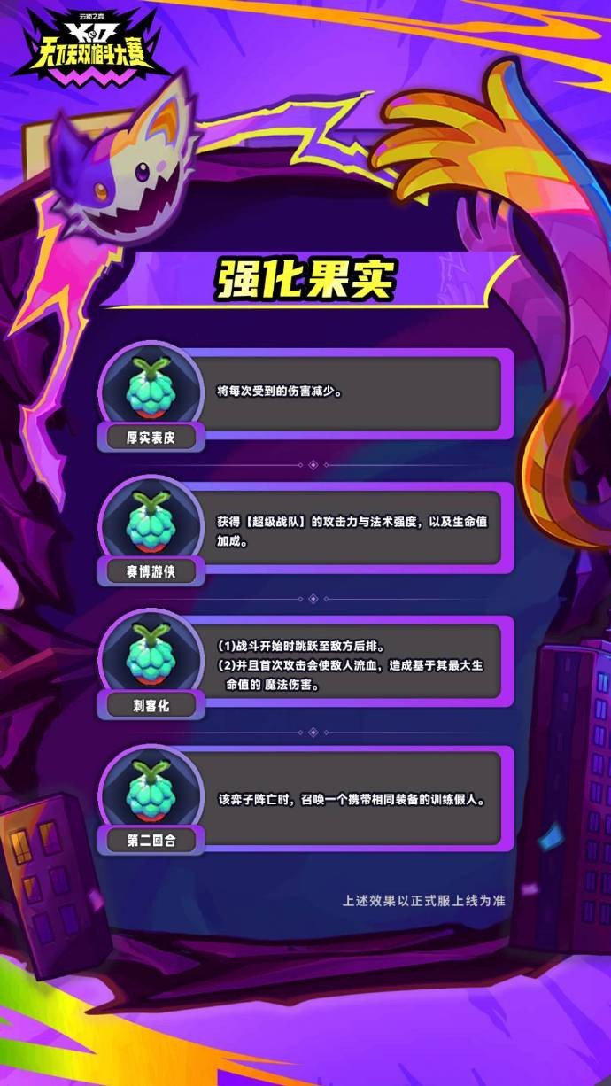 云顶之弈S15版本天下无双格斗大赛主题PBE美测服更新了,在新赛季会增加很多新的羁绊和棋子,还有不少老羁绊,老英雄的回归,还有新的机制,那么下面就给大家带来S15能量果实机制介绍。