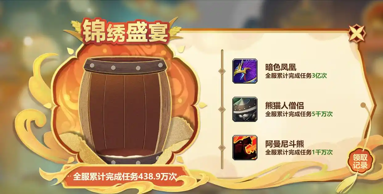 怀旧服的全服任务奖励是阿曼尼斗熊、熊猫人、暗色凤凰,这个同样需要全服玩家共同协作。