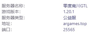 我的世界里面有很多的服务器,每个服务器都有自己的独特的玩法,今天给大家带来的服务器的名字叫:零度南川GTL,那么下面就是这个服务器的一个具体的IP地址.