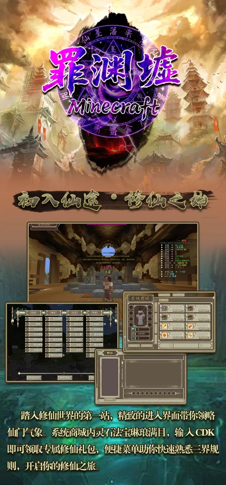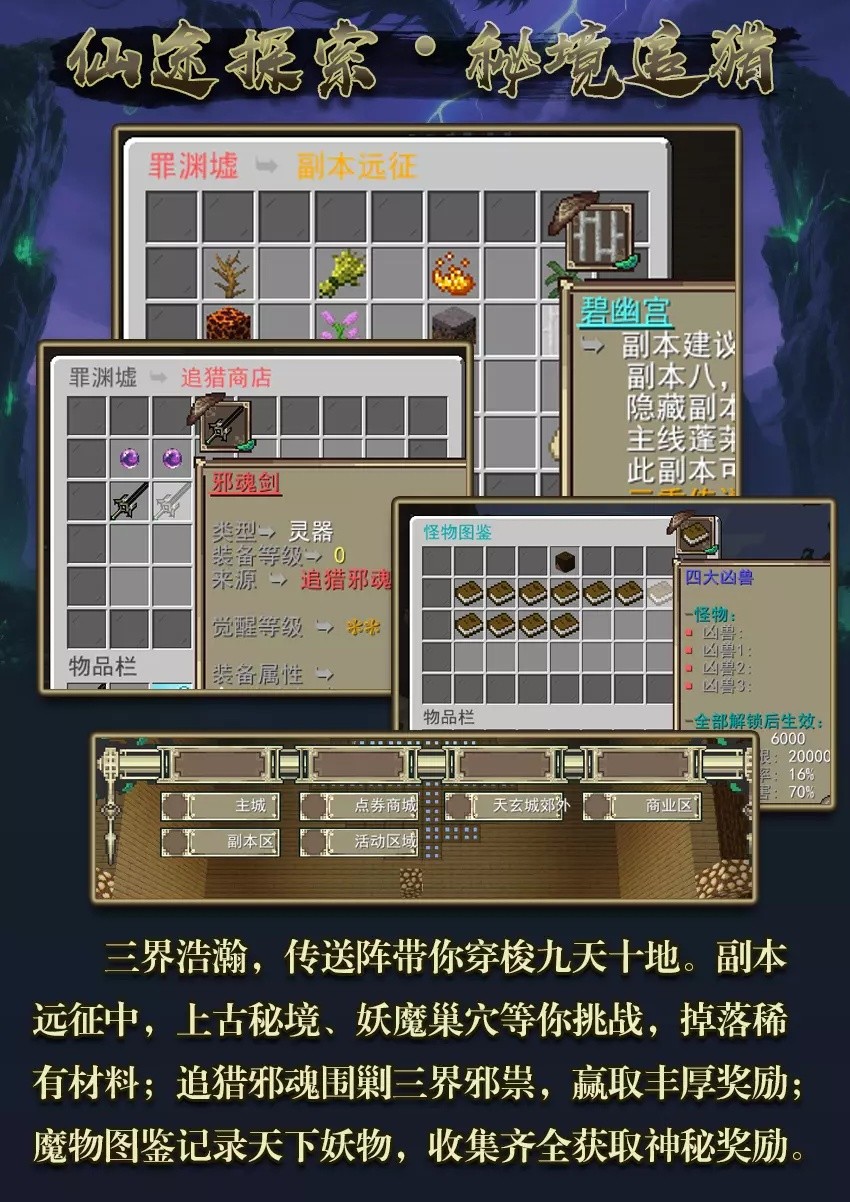 [1.12.2] 罪渊墟 - 原创修仙RPG | 七月新区开荒 | 多种副本 | 宠物 |天赋加点 | 黑市 | 超多玩法| 境界 | 饰品 | 怪物图鉴 | 灵魂镶嵌 | 永不跑路