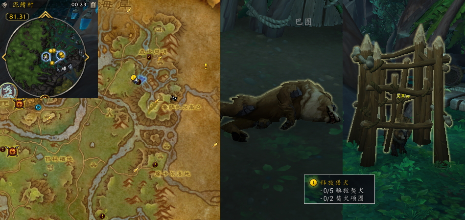 任务过程:接取任务后,前往(泥鳍村 81,31),点击并释放5个獒犬,收集2个任务物品 “獒犬项圈”。