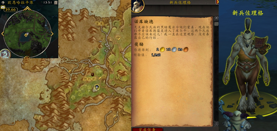 任务过程:接取任务后,前往欧恩哈拉平原(39,66)交付任务。