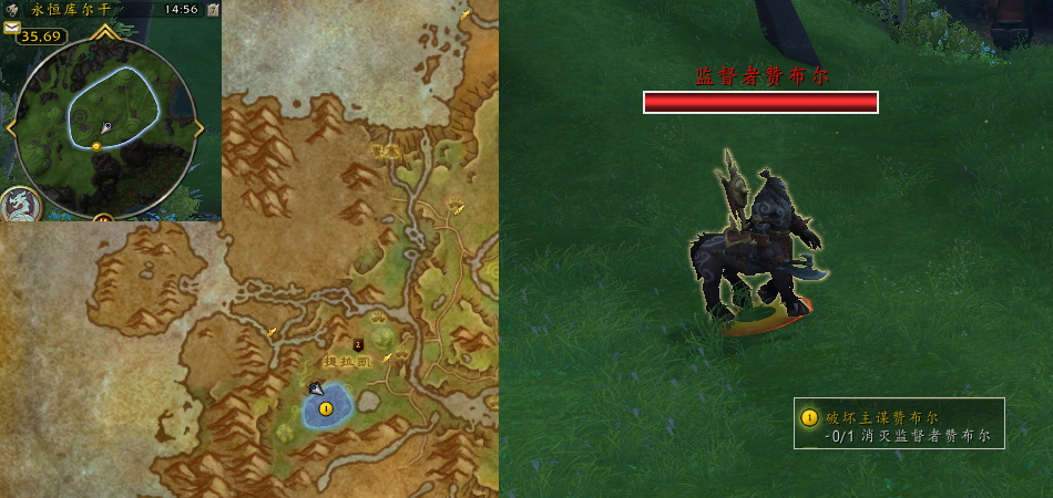 任务过程:接取任务后,前往(35,69)附近,消灭任务目标 “监督者赞布尔”。