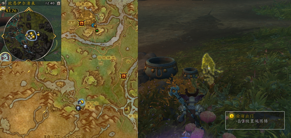任务过程:1、接取任务之后,在欧恩伊尔清泉(56,76)附近,点击3个图腾。