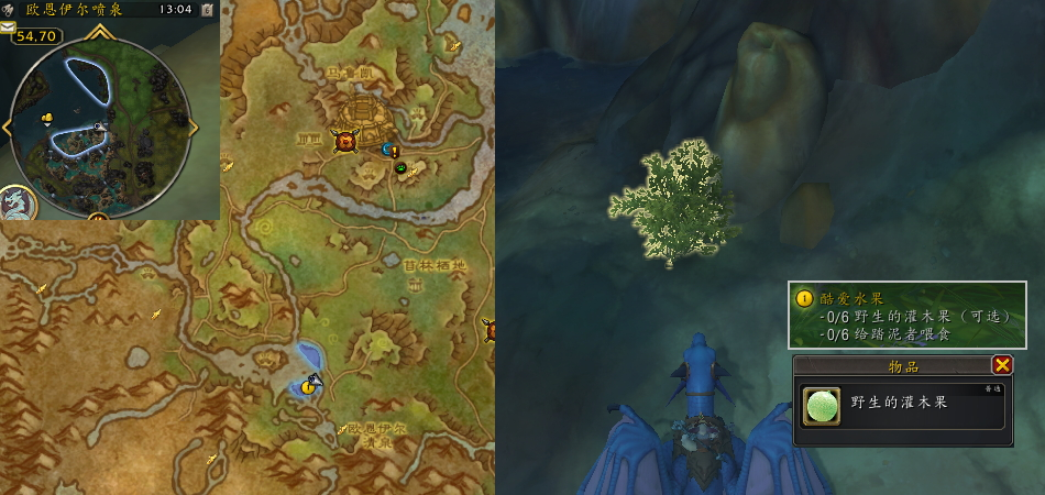 任务过程:1、接取任务之后,在欧恩伊尔喷泉(54,70)附近,收集6个野生的灌木果。