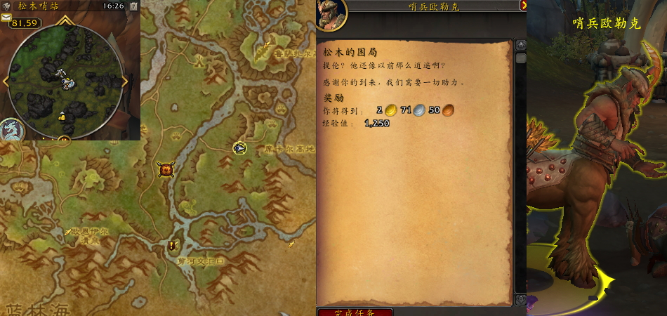 任务过程:接取任务之后,前往松木哨站找哨兵欧勒克(81,59)。