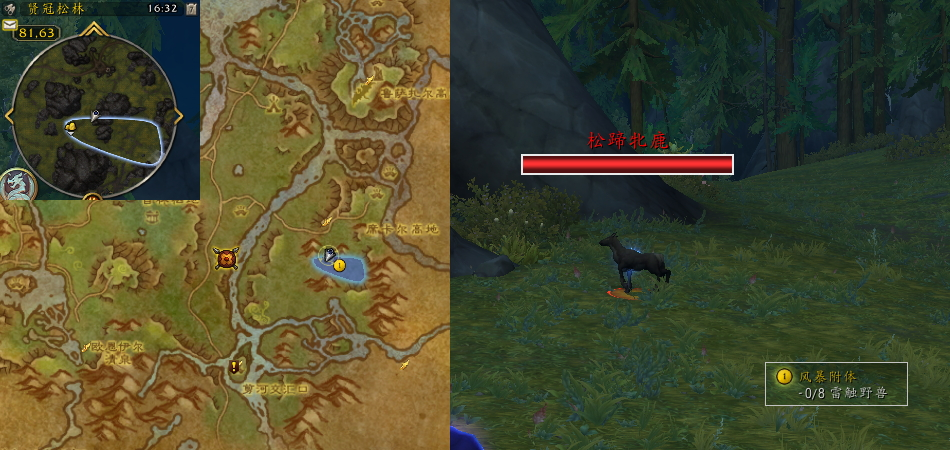 任务过程:在贤冠松林消灭8只雷触野兽(82,63),比如:松蹄牝鹿。